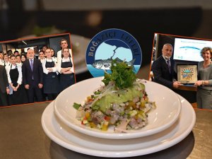 Daha sonra Iglo Village"nin restoranında şöminede odun ateşinde pişirilen somon ikram edildi. Somondan önce geyik etinden yapılan mantarlı çorba nefisti. En son ise dondurmalı yaban mersini ikram edildi.