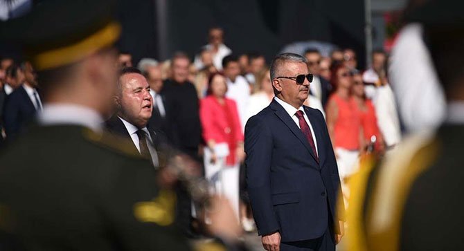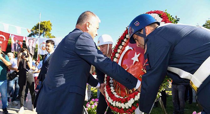 Antalya - 30 Ağustos Zafer Bayramı’nın 100’üncü yıl dönümü tüm yurtta olduğu gibi Antalya'da da coşkuyla kutlandı. Büyük Zafer'in 100'üncü yılı kutlamaları kapsamında ilk tören Vali Ersin Yazıcı’nın Cumhuriyet Meydanı'ndaki Ulusal Yükseliş Anıtı’na çelenk sunumuyla başladı.
