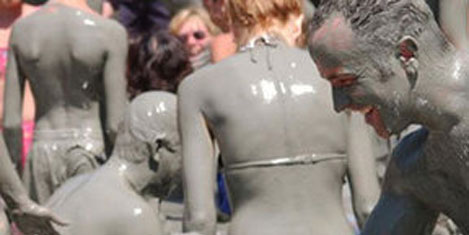 PAMUKKALE- Yerli ve yabancı turistler 45 dereceyi bulan hava sıcaklığına aldırmadan çamur havuzlarına giriyor. Denizli'nin Pamukkale ve Karahayıt bölgesindeki oteller, başta romatizma rahatsızlıkları olmak üzere bir çok hastalığa iyi gelen çamurlu sudan yararlanmak için gelen turistelere ev sahipliği yapıyor. Çamur tedavisine gelenlerde son yıllarda yabancı turist sayısında da artış olması dikkat çekerken, yabancı turistler 34-35 dereceyi bulan hava sıcaklığına aldırmadan sıcak suyun bulunduğu çamurlu havuza girip saatlerce çamur banyosu yapıyor.