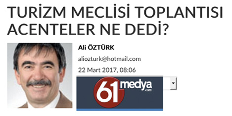 Ali Öztük “Trabzon Turizm Meclisi toplantısına gittiğimizde 200 civarında işletme yetkilisi ile karşılaştık. Acente yetkilileri sorunlarını dile getirecekti. Güzel bir tablo vardı.İlk kez onlar konuşacak, yetkililer dinleyecekti. Biz de bir anlamda sorunlara vakıf olacaktık” şeklinde görüşlerini belirterek toplantıda TÜRSAB’ın ve TESOB’un yaklaşımlarıni dğerlendirerek henüz turizm kenti olamadıklarını yazdı.