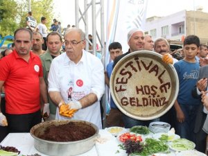 ADIYAMAN, Adıyaman’da acı en tatlı halini aldı Çiğ köftenin tescilini alan Adıyaman’da Çiğ Köfte Festivali düzenlendi. Bu yıl ilki düzenlenen Çiğ Köfte Festivali renkli görüntülere sahne oldu. Festivalde çiğ köfte leğeninin başına geçerek çiğ köfte yoğuran Adıyaman Belediye Başkanı Hüsrev Kutlu, yoğurduğu köfteleri protokol üyelerine ve gazetecilere ikram etti. Harfhane grubu ise birbirinden güzel türküler seslendirdi. Konser eşliğinde yoğrulan çiğ köfteler daha sonra davetlilere ikram edildi. Festivalin açılışında konuşan Vali Nurullah Naci Kalkancı, dünya çapında Adıyaman’ın etsiz çiğ köftesinin yayılmasına katkı sağlayanlara teşekkür ederek, “Coğrafi işaret olarak tescillenmesi çok önemlidir. Adıyaman Ticaret Odasının girişimleri ve siyasilerimizin destekleriyle bu başarıldı. Adıyaman’ın dünyada tanıtılmasına ciddi katkıdan bulunan bir üründür” dedi.