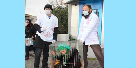 İSTANBUL- Hayvan Özgürlüğü Aktivistleri, maymunları doğal ortamlarından koparıp deney laboratuarlarına taşıyan Air France ve KLM havayolu şirketlerini protesto etti.