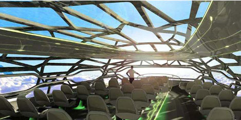 Airbus Mühendislikten Sorumlu Başkan Yardımcısı Charles Champion, geleceğin uçaklarının yolculara üzerinde uçtukları manzarayı 360 derece açıyla izleme imkânı vereceğini belirtti. Yeni uçakta yolcuların gökyüzünde süzülüyormuş hissi içinde şehir ve doğa manzarası izleyerek seyahat edebileceğini anlatan Champion, "En rahat yolculuk için yolcunun vücut şekline uyum sağlayan koltukların yanı sıra kabinde dekorlar oluşturmak amacıyla holografik projeksiyonlar kullanılacak. Yolcular için ayrıca interaktif bölüm bulunuyor. Burada sanal golf gibi bazı oyunları oynayabilecek" diye konuştu.