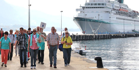 ALANYA- Güney Kıbrıs Rum Kesimi'nin Limasol limanından 546 yolcuyla hareket eden ‘Ms Albatros’ isimli lüks kruvaziyer gemi, Alanya limanına yanaştı. Bahama bandıralı lüks Alman kruvaziyer gemisi ‘Ms Albatros’, 546 yolcusuyla Alanya'ya geldi. 348 mürettebatı bulunan lüks gemiden inen turistler, liman çıkışında bekleyen tur otobüsleri ve taksilerle Alanya’nın tarihi ve turistik yerlerini gezdi. Tamamı Alman zengin turistleri taşıyan gemi, saat 20.00’de Rodos’a hareket etmek üzere Alanya limanından ayrılacak.
