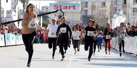 Finiş çizgisine ulaşabilmek için 7 santimetre yüksekliğinde ve 1,5 santimetre kalınlığındaki topuklu ayakkabılarını ayaklarına bantlamak zorunda kalan kadın yarışmacılar zor anlar yaşadı. 100 metreyi 15 saniyeyle 25 saniye arasında koşan yarışmacılar Türkiye'de bir ilke imza attı.