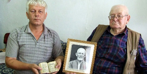 80 yaşındaki Ramazan Çubuk, babasından kalan 91 yıllık el yazması Kur-an'ı Kerim'i oğlu 45 yaşındaki İbrahim Çubuk'a hediye etti.
