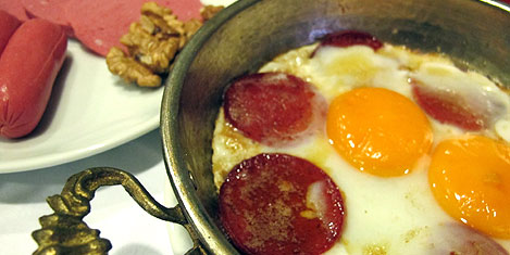 Kahvaltıda ikram edilen yumurtanın köy yumurtası olmasına özen gösterilirken, domates, salatalık gibi ürünler özlendiği gibi kokulu olarak sunuluyor.
