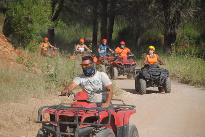 Manavgat/Antalya - Manavgat Oymapınar Barajı , Manavgat Barajı ve Sarılar Mahallesi Bal Ormanı'nda Jeep ve ATV Quad safari turları hız kazandı.300 bin yatak kapasitesi ile konaklamada Türkiye turizminin en büyük turizm destinasyonu Manavgat-Side de tatile gelen Alman, İngiliz,Hollanda, Danimarka, Çek Cumhuriyeti,Macaristan, Romanyalı,Avusturyalı, Finlandiyalı, Belçikalı İsveçli , İsviçreli , Lüksemburglu ile Rus turistler alternatif turizm kapsamında ATV Quad safari turuna çıkıyor.