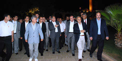 Daha sonra kapalı yerde oturmaktansa açık havada oturmayı tercih ederek göl kenarında yerde oturup Şanlıurfa Gazeteciler Birliği Başkanı ve TYB üyeleri Veysel Polat, Başkan Yardımcıları Müslüm Abacıoğlu ve Mehmet Talat Akay ile uzun uzun sohbet eden Kültür ve Turizm Bakanı Ertuğrul Günay, beraberindeki Vali Vekili Bahri Tiryaki, Müzeler Genel Müdürü Murat Süslü, İl Kültür Müdürü Selami Yıldız, Harran Üniversitesi Rektörü Prof.Dr. İ.Halil Mutlu ile uzun uzun sohbet etti.