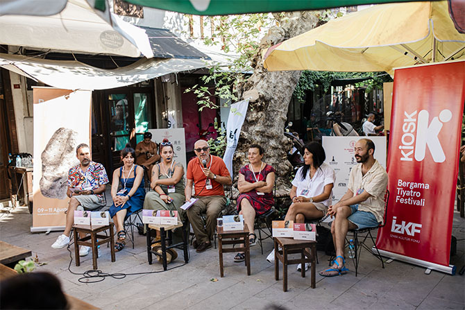 Bu yıl Bergama Tiyatro Festivali kapsamında ilk kez düzenlenen ve Ege Bölgesi’nde tiyatro ve performans üreten yerel üreticileri Türkiye’deki sahne sanatları profesyonelleri ile buluşturmayı hedefleyen KİOSK performatif showcase katılımcılara yeni ifade alanları sunarak, finansal, idari ve operasyonel becerilerini geliştirme fırsatı tanıdı. Ege Bölgesi’nden gerçekleşen 22 başvuru arasından seçilen; Gong Sahne & Defne Prodüksiyon’un “GONG”, Mudhik Tiyatro’nun “BİR MUDHİK OYUN”, Boyoz Akademi Sanat Merkezi’nin “CANİ” ve Tiyatro Kök35’in “HİÇ KİMSENİN ÖYKÜSÜ” oyunları bir showcase (tiyatro vitrini) olarak festival kapsamında izleyicilerle buluşurken, ekipler aynı zamanda 3 gün boyunca düzenlenen tanışma, bağ kurma, atölyeler, söyleşi ve forum etkinlikleriyle profesyonel kapasite gelişimlerine katkı sağlayacak alanlarda bulunma fırsatı da yakaladı.