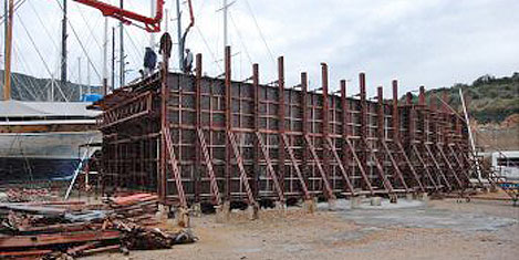 Bodrum'un tersaneler bölgesinde üretilen dalgakıran Denizden yüzdürülerek montaj yeri olan Gümbet koyuna ulaştırılacak.