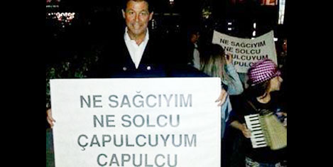 Boyner Holding Yönetim Kurulu Başkanı Boyner'in, elinde taşıdığı pankartta, "Ne sağcıyım ne solcu, çapulcuyum çapulcu" yazıyordu!