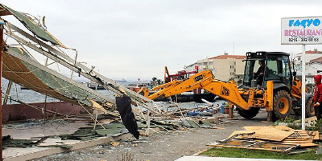 İSTANBUL - Büyükada'da iskelesinin yanında uzanan sahil şeridinde çirkin görüntü oluşturduğu belirtilen restoran ve kafeler yıkıldı.