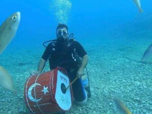 Denizin en dibine dalan Çelik, suyun altında davulunu çalmaya başladı. Balıklar arasında davul çalan Çılgın Davul Virtüözü Çelik’in o anları renkli görüntülere sahne oldu.