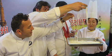 İSTANBUL- Çin Halk Cumhuriyeti’nin “yemek cenneti” Hangzhou bölgesinin dünyaca ünlü aşçıları İstanbul’da Jing Ya Tang adlı Çin restoranında müthiş bir Çin yemekleri gösterisi yaptılar. Konuklara Çin’in dünyaca ünlü lezzetlerinden oluşan 17 çeşit yemek sunan Çinli aşçıların yemek şöleni herkesi şaşırttı.