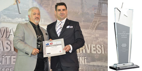 Crystal Otellerinin ödül aldığı 3. Uluslararası AB Kalite Zirvesi Ödülleri töreni İstanbul Çırağan Sarayı’nda yapıldı. İş ve turizm dünyasından önemli kişilerin katıldığı törende Crystal Otelleri’nin ödülünü Satış & Pazarlama Direktörü Özcan Şirin, Tüketici Akademisi Başkan Yardımcısı Dr. Necip Uludağ’dan aldı.