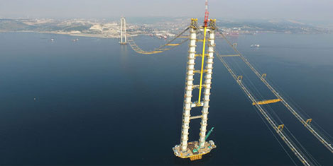 Ulaştırma, Denizcilik ve Haberleşme eski bakanı Feridun Bilgin’in Mart 2016’da açılacağı bilgisini verdiği Gebze-Orhangazi-İzmir otoyol projesinin en önemli bölümü olan İzmit Körfez Geçiş Köprüsünde tabliyelerin yerlerine takılması için son hazırlıklar yapılıyor.