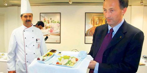İSTANBUL - Uçaklarda yemeği aşçılar pişirince THY'de müşteri memnuniyeti yüzde 98'e çıktı. Aynı ciddiyetle çalışarak geri kalan iki kişiyi de memnun edeceklerini belirten ikram şirketi Turkish Do&Co'nun Genel Müdürü Atilla Doğudan, İstanbul'daki üretim merkezinde hazırlanan mönülerin, 5 yıldızlı oteller ile aynı şartla üretildiğini dile getirdi.