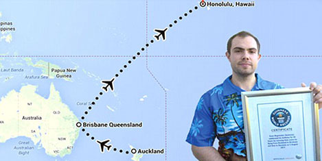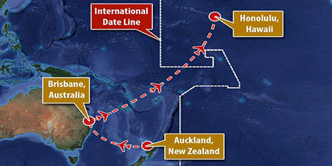 Sven Hagemeier, Brisbane, Avustralya yoluyla Hawaii'ye Auckland, Yeni Zelanda uçtu . Honolulu, Hawaii Uluslararası Tarih Çizgisi genelinde zamanda geri gitti. Böylece Brisbane, Avustralya uçan sonra yaptığı 26 doğum günü için Guinness Dünya Rekoru aldı.