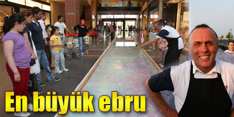 Şentürk ve öğrencilerinin çalışmasını, alışveriş merkezine gelen çok sayıda vatandaş hayranlıkla izledi. Şentürk, yaptığı açıklamada, geçen yıl yaptığı 46.12 metrekarelik eserin 'dünyanın en büyük ebrusu' olarak Guinness Rekorlar Kitabı'na girdiğini hatırlattı. Yeni çalışması ile kendi rekorunu kırdığını anlatan Şentürk, öğrencilerini ve emeği geçenlere teşekkür etti. Yeni rekor denemesinde Guinness yetkililerinin bulunmadığını ifade eden Şentürk, EYOF yetkililerinin arzu ettikleri taktirde tescil için Guinness'e başvurabileceklerini ifade etti. Şentürk, "Biz rekorumuzu kırdık, eserimiz burada." dedi. Şentürk ve öğrencilerinin yaptığı 'dünyanın en büyük ebrusu'ndan birer parçanın EYOF'a katılan ülkelere hediye edileceği bildirildi.