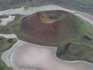 Suyu tuzlu olan gölün ortasında 50 metre yüksekliğinde bir volkan konisi bulunuyor. Gölün 6 ay önce havadan çekilen fotoğraflarıyla şimdi çekilen fotoğrafları arasındaki fark ise şaşırttı.