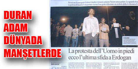 ROMA- Türkiye’de çığ gibi büyüyen “Duran Adam” pasif direniş eylemi İtalya’da “La Repubblica” gazetesine tam sayfa konu oldu.