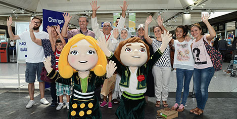 EXPO 2016 Antalya Ajansı, gelecek yıl 23 Nisan’da kapılarını açacak ve 6 ay boyunca ziyaret edilebilecek olan EXPO 2016 Antalya’nın tanıtımlarını aralıksız sürdürüyor. Sevimli maskotlar Ece-Efe, Antalya Havalimanı’nın ardından, günde yaklaşık bin 200 uçağın iniş-kalkış yaptığı ve havayolu trafiğinin kesişme noktası olan İstanbul Atatürk Havalimanı’ndaydı. Farklı dillerde hazırlanan broşür, şapka ve rozetlerden oluşan minik çantaları alan Ece-Efe, havalimanı iç ve dış hatlar gidiş terminallerine gelenlere dağıttı. Sevimli maskotları görenler önce kısa bir şaşkınlık yaşadı ardından bol bol fotoğraf çektirdi. Ece-Efe, çocuklar kadar büyüklerinde ilgi odağı oldu.