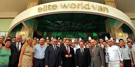 Bakan Ertuğrul Günay, TOKİ Başkanı Ahmet Karabel, Van Valisi Münir Karaloğlu ve beraberindeki heyetle birlikte 1 Eylül’de misafirlerini ağırlamaya başlayan Elite World Van Otel’i ziyaret etti.