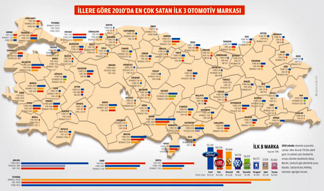 Otomobil satışlarında birkaç yıldır devam eden istikrarlı büyüme, şirketlerin yeni stratejiler üzerine odaklanmasını sağladı. Eskiden sadece büyük şehirlere yoğunlaşan markalar, son yıllarda bayi yapılanmasında Anadolu'ya ağırlık vermeye başladı. Sadece Gaziantep, Adana, Kayseri, Diyarbakır, Denizli, Konya, Mersin, Eskişehir, Samsun gibi büyük şehirler değil, yeni gelişen il ve ilçelerde açılan bayi sayısında gözle görülür artışlar var. Birçok Anadolu şehrinde sanayinin ve turizmin gelişmesiyle birlikte otomobil ve hafif ticari araç talebi önceki yılların üzerine çıkıyor. İstanbul'daki satışların nüfusa oranla daha yüksek oluşmasında tüm pazarın yüzde 15-20'sine ulaşan filo alımları etkin olurken Ankara'da rakamı yukarı taşıyan ise kamunun satın alımları oluyor.