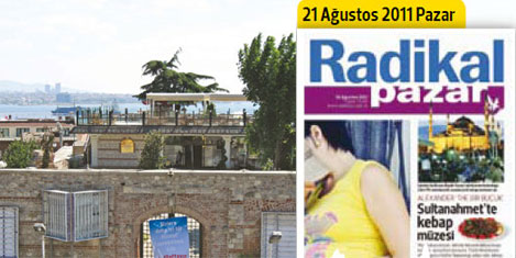 İSTANBUL- Fatih Belediyesi’nin Sultanahmet’in göbeğinde “Müze yapacağım” diye kiraladığı arazide açtığı kebapçı, kepenklerini indirdi. Radikal’in 21 Ağustos’ta yayımlanan ‘Sultanahmet’e Kebap Müzesi/Çek birbuçuk porsiyon Alexander’ başlığıyla skandalı duyurmasının ardından, Muradan Restoran kapılarını müşterilerine kapattı. Kapıya da şöyle bir pankart astı: ‘‘Size daha iyi hizmet verebilmek için tadilattayız.’’