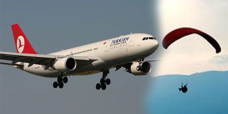 THY'nın Ankara Esenboğa Havalimanı’na iniş için alçalan yolcu uçağı, yamaç paraşütü ile atlayış yapan bir grup paraşütçü ile karşılaştı