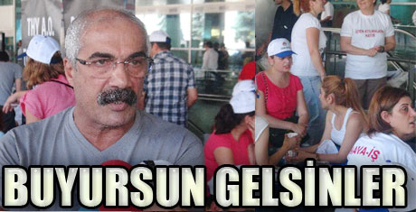 İSTANBUL- Atatürk Havalimanı'nda 'gösteri ve eylem yasağı' getirilmesine tepki gösteren Hava-İş Sendikası Başkanı Atilay Ayçin, “Biz buradayız, buyursun gelsinler ve bizi göndersinler.” dedi.