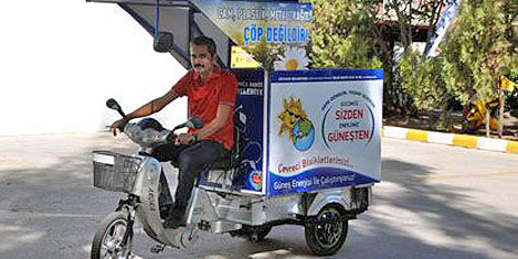 Yılın sekiz ayı güneş gören Fethiye'de, Belediye güneş enerjisini kullanarak geri dönüştürülebilir atıkları çevreci bisikletler ile toplamayı hedefliyor. Hizmet veren tüm çevreci bisikletlere güneş enerjisi paneli taktıran belediye yetkilileri ilçenin 15 mahallesinde güneşten yararlanarak dönüştürülebilir atıkları toplayacak.