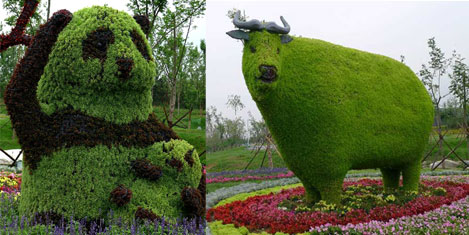 Shaanxi Eyaleti'nin tarihi başkenti Xian'da düzenlenen uluslararası bahçıvanlık ve bahçe peyzajı fuarında botanik hayvan heykelleri de sergilendi.