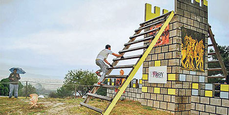 Çanakkale’de düzenlenen Games of Troy’un tanıtım yarışması yapıldı. Yarışmacılar, zorlu parkurlarda ter döktü. Yarışmayı Çanakkale Valisi Ahmet Çınar, Belediye Başkan Yardımcısı Celal Karakaş, İl Emniyet Müdürü Yılmaz Özden, İl Jandarma Komutanı Kıdemli Albay Enver Aydın, ÇOMÜ Rektörü Prof. Dr. Sedat Laçiner, ev sahibi olarak Çanakkale Ticaret ve Sanayi Odası’nın (ÇTSO) Başkan Yardımcısı Mert Mildon ile ÇTSO Meclis ve Yönetim Kurulu üyeleri seyretti. Games of Troy, ÇTSO tarafından Çanakkale Savaşları’nın 100. yılı için hazırladığı projelerden biri. Yarışma, ÇTSO Genel Sekreteri Sema Sandal’ın açılış konuşmasıyla başladı. Sandal, bu yarışın 100. yıl dolayısıyla 2015 Nisan ayında yapılacak uluslararası Games of Troy için tanıtım etkinliği niteliğinde olduğunu ifade etti. Games of Troy hakkında bilgi veren Sema Sandal, Çanakkale ruhu ile Troya efsanesinin parkurda birleştiğini belirterek, “Yarış parkurunda zorlu tırmanma engelleri, yüksek duvarlar, ağlı rampalar, dar tüneller, tahterevalli, denge ve Tarzan engelleri, Truva Atı ve Apollon tapınağı geçişi gibi birbirinden görkemli ancak bir o kadar da zorlu engeller yer alıyor. ÇOMÜ Teknopark ÇTSO Ar-Ge Merkezi önünden başlayan parkurda yarışmacılar, 2,2 kilometrenin ardından Troya Kalesi’ne ulaşarak zaferlerini ilan edecek. 70 bin metrekare alandaki Games of Troy parkurunda, 24 zorlu engel yer alıyor.” dedi.