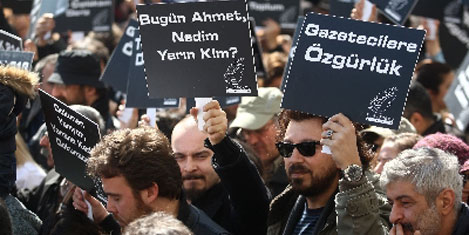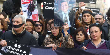 Gazetecilere Özgürlük Platformu öncülüğünde Galatasaray Meydanı'nda bir araya gelen yüzlerce kişi, "Hizbullahçılar dışarı, gazeteciler içeri", "Gazeteciysen boyun eğmeyeceksin, boyun eğeceksen gazeteciyim demeyeceksin" ve "Gerçeklerin temiz ise bu endişe niye" pankartları ile Taksim Meydanı'na doğru yürüyüşe geçti. Tünel Meydanı'nda toplanan CHP İl Örgütü üyeleri ile İstanbul Barosu'na bağlı Çağdaş Avukatlar Grubu ve çeşitli sivil toplum örgütleri de Gazetecilere Özgürlük Platformu'nun yürüyüşüne katılarak destek verdi. Tutuklu gazetecilerin yakınları, Uğur Dündar ve CHP İstanbul Milletvekili Çetin Soysal'ın da aralarında bulunduğu grup sık sık "Kalemim, kitabım, onurumdur" şeklinde slogan attı. Eylemciler, gazetecilerin tutuklanmasıyla ilgili çıkan haberlerin yer aldığı gazete sayfalarını zincire bağlayarak İstiklal Caddesi boyunca yürüdü. Yürüyüş sırasında bazı eylemcilerin ağızlarına siyah bant taktıkları görüldü.