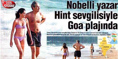Nobel ödüllü yazar Orhan Pamuk ile Hint yazar sevgilisi Kiran Desai, Goa sahillerinde Hindistan"da baş başa tatil yaparken görüntülendi. Pamuk (58) ve Desai (39) hem dinlenmek hem de romanları üzerinde çalışmak için Goa"da bir aylığına villa kiralayıp, şubat ayını orada geçirdiler.