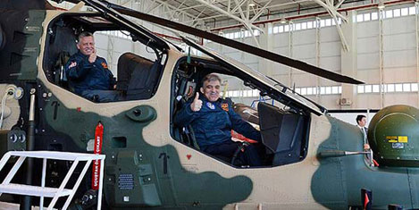 Cumhurbaşkanı Gül de hem helikopter hakkında yetkililerden bilgi aldı hem de pilot kasklarını inceledi. ATAK helikopterinin önünde basına poz veren iki lider, daha sonra uçuş kulesine geçti.