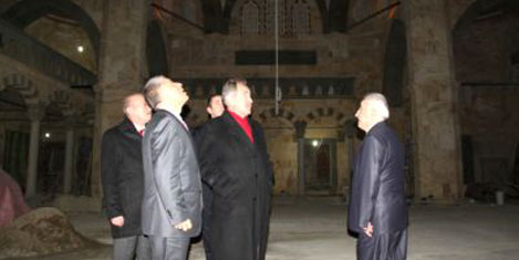 GİRESUN- Ordu'ya gelen Kültür ve Turizm Bakanı Ertuğrul Günay, Giresun'da yapımı devam eden iki camide incelemelerde bulundu. Bakan Ertuğrul Günay Ordu programı sonrasında beraberinde Giresun Valisi Dursun Ali Şahin ile birlikte ilk olarak Bulancak ilçesinde temeli 1987 yılında atılan ve yapımı hala devam eden Sarayburnu Camisi'nde incelemelerde bulundu. Bakan Günay'a yapımı büyük ölçüde tamamlanan caminin taşlarının ocaklardan bloklar halinde çıkarılıp, araçlarla getirilerek mermer tezgahlarında biçildikten sonra taşların el işleme ustalarına verildiği, onlarında ölçü ve şablonlara uygun ellerindeki aletlerle taşları işleyip, duvar ustalarına vermek suretiyle taşların yerlerine konulduğu bilgisi verildi.