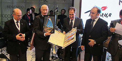 Almanya'nın başkenti Berlin'de bugün açılan 45. Uluslararası Turizm Borsası Fuarı'nı ziyaret eden Kültür ve Turizm Bakanı Ertuğrul Günay, Alman Turizm Birliği Başkanı Klaus Laepple'ye, Alanya'da adına açılan park ile ilgili karar belgesini ve parkın bir fotoğrafını takdim etti.