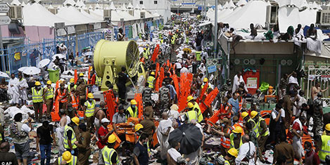 MEKKE- Hac vazifesini yerine getirirken Mekke’nin kutsal mekanlarından Mina’da şeytan taşlama sırasında çıkan izdihamda Suudi Arabistan Sivil Savunma Müdürlüğü’nden yapılan açıklamaya göre en az 753 kişi öldü, 887 kişi yaralandı.Ölü sayısının artmasından endişe ediliyor.