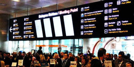 Türk Hava Yolları (THY) yönetimi ile 24. dönem toplu iş sözleşmesi görüşmelerinde uzlaşamayarak greve giden Hava-İş Sendikası'nın bazı üyeleri Atatürk Havalimanı metro katında toplanarak eylem yaptı.