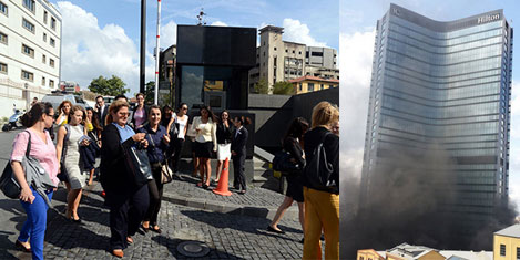 İSTANBUL-Şişli'de, Bomonti Hilton Otel’in teras katında bulunan jeneratörün henüz bilinmeyen bir nedenle alev alması sonucu yangın çıktı. Otelde bulunan müşteriler tahliye edilirken, vatandaşlar yangını şaşkın gözlerle izledi.