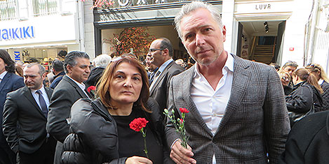 Hollanda’nın önemli seyahat acentelerinden Sunair Vakanties’in genel müdürü İstiklal Caddesi’nde canlı bombanın saldırı yaptığı yere Lampa Otel’in genel müdürü Sevda Yılgaz ile birlikte gelerek karanfil bırakıp terörü lanetledi.