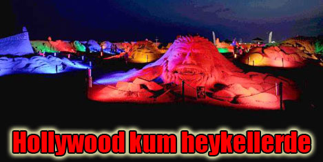ANTALYA -Ziyarete açılan Antalya Kum Heykel Festivali'nde 11 ülkeden 25 sanatçı yer alıyor. Ziyaretçilere kapılarını. Bu yıl "Hollywood" temasının işlendiği kum heykel festivalinde, aralarında Hollanda, Ukrayna, Rusya ve Brezilya'nın da bulunduğu 11 ülkeden 25 sanatçının yaptığı kumdan heykeller yer alıyor. 'Batman', 'Er Ryan'ı Kurtarmak', 'Matrix', 'Star Wars', 'Titanic', 'E.T', 'Karayip Korsanları' filmleri dahil, 35 filmin figürlerinin kumdan heykellerinin sergilendiği festival, 14 Kasım tarihine kadar açık kalacak.  Festivaldeki kum heykellerin yapılışı sırasında 10 bin ton kumun kullanıldığı ve kum heykellerin 2 ayda tamamlandığı belirtildi.
