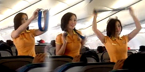 Filipinler'de özellikle iç hatlarda ülkenin her bölgesine uçan Cebu Pasific Air şirketi ilginç bir gösteriye imza attı. Şirketin hostesleri, uçağın kalkışı esnasında yolcuları bilgilendirmek için anlatılan güvenlik talimatlarını dans eşliğinde sundu.