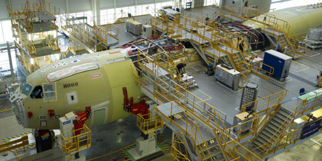 MSN9 olarak adlandırılan uçağın kanatları ve merkez kanat kutusunun entegrasyonu Mayıs ortasında, burun ve gövde montajı da Haziran sonunda başlamıştı. Kuyruk dikmesi ve yatay kuyruk stabilizesinin montaj hattına varması ile birlikte dün son montaj merkezinde, seri üretimin üçüncüsü olan uçak için tüm hazırlıklar tamamlandı.