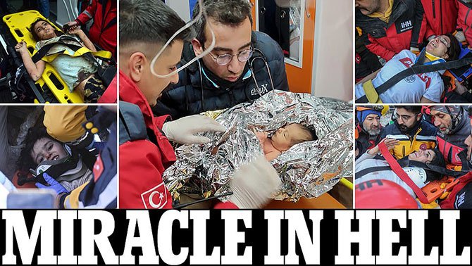 Daliy Mail “Cehennemdeki Mucizeler: Hayatının neredeyse yarısını moloz altında geçiren on günlük bebek kurtarıldı ve diri diri gömülen altı kişilik aile de kurtarıldı, çünkü 21.000 kişinin ölümüne neden olan Türkiye-Suriye depreminden inanılmaz hayatta kalma hikayeleri ortaya çıkmaya devam ediyor” dedi.
