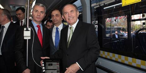 İETT’nin 1705 yeni otobüs alarak filo yaş ortalamasını 4’e çektiğini, özel halk otobüslerinin de yenilenmesiyle şehrin 3 bin yeni otobüse kavuşacağını ifade eden Kadir Topbaş, İstanbul’da “Akıllı Otobüs” dönemini başlattıklarını müjdeledi.