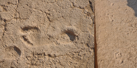 Aynı alandaki kazılar sırasında genç yaşta bir erkeğin ve bir oğlağın ayak izlerine rastladıklarını söyleyen Aybek, şunları söyledi: “Bu ayak izlerine rastladığımızda, hamamın inşa edildiği ya da onarıldığı günler gözümüzün önünde canlandı. Ayak izlerinin, yapının harcı henüz kurumamışken buraya giren bir oğlağa ve onu kovalayan bir delikanlıya ait olabileceğini düşünüyoruz” dedi.